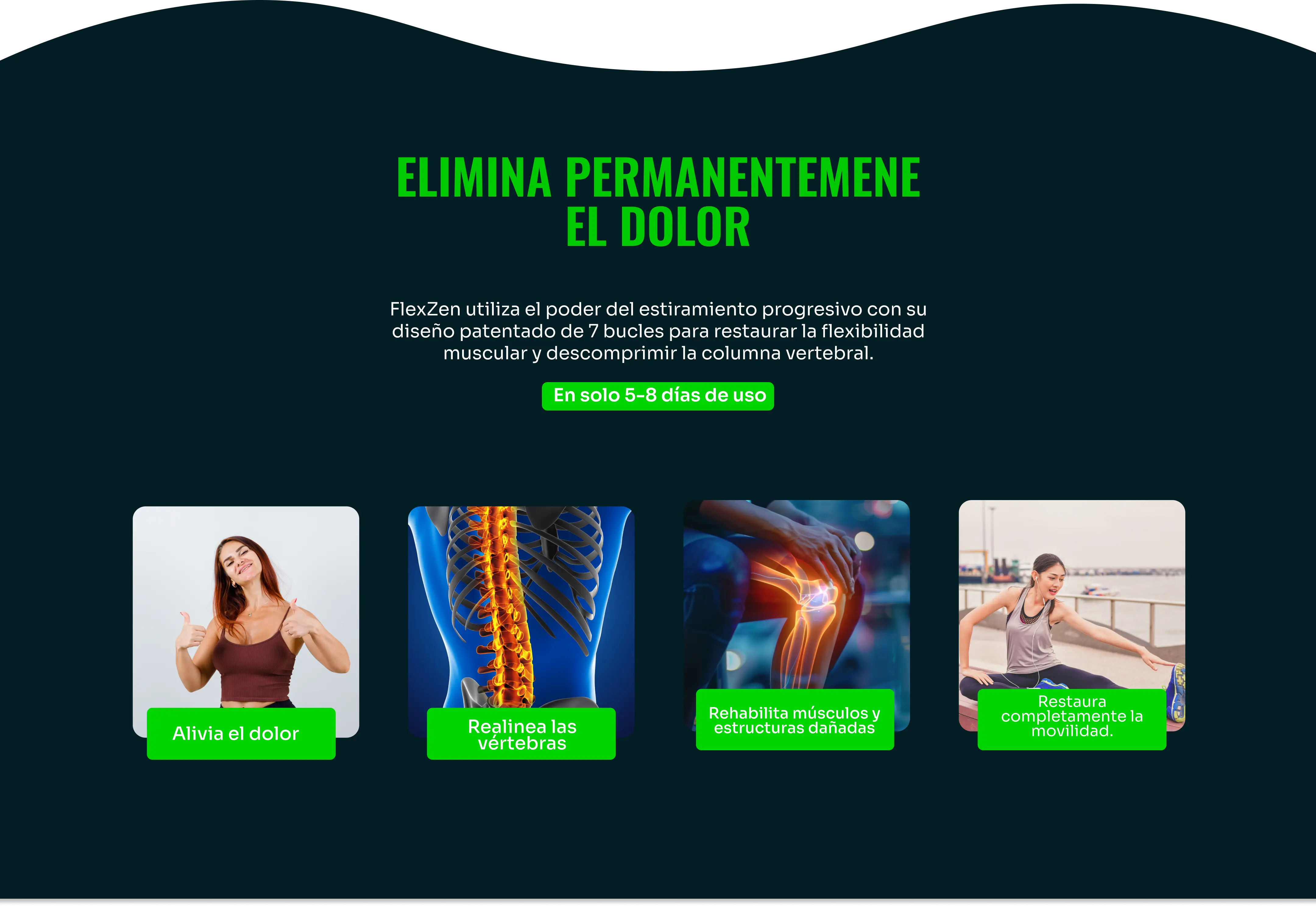Utilizar Flexzen durante al menos 10 minutos por 14 días rehabilita progresivamente las estructuras de la cadena muscular, aliviando el dolor y restaurando completamente tu movilidad.