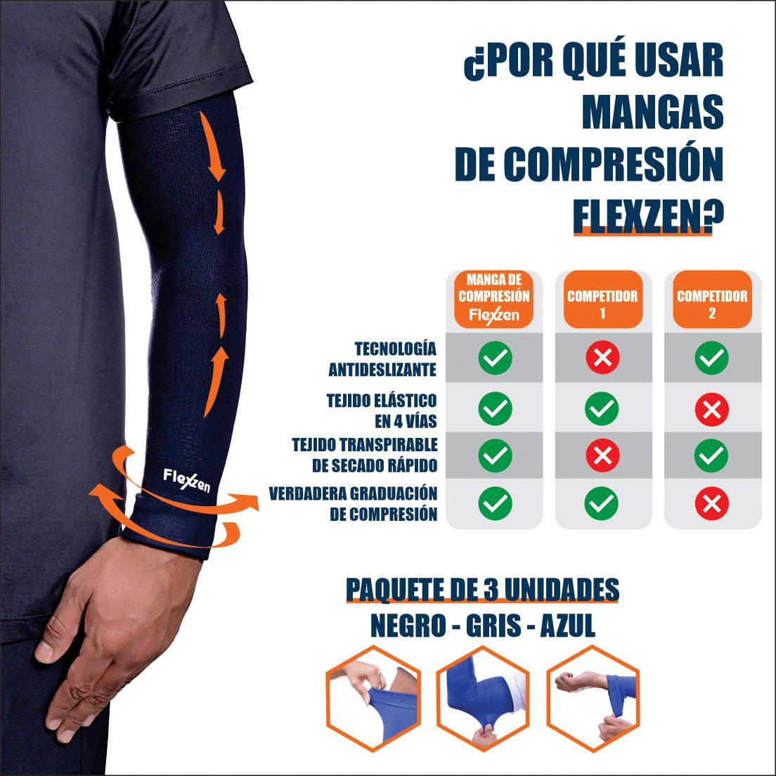 Mangas Flexzen® UPF 50+ Paga 2 Lleva 3 (Negro, Azul Oscuro y Gris)
