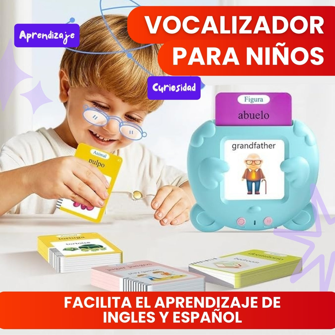 Descubre VOZKIDS, tarjetas bilingües interactivas con 234 tarjetas en ingles y español y, una operación simple en 3 pasos. Este vocalizador inteligente permite a los niños aprender de forma autónoma, divertida y con sonidos sensoriales para lograr destacarse como el mejor del aula.