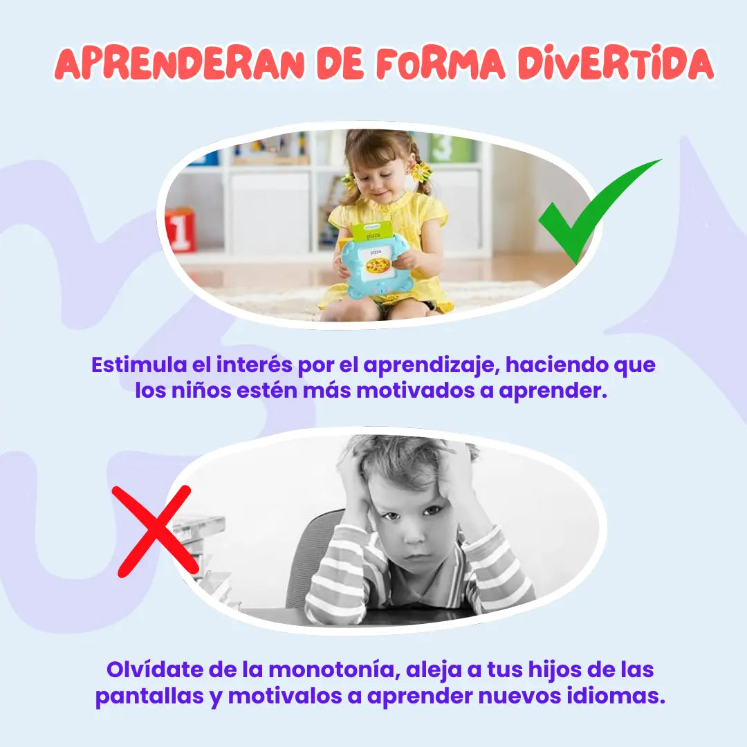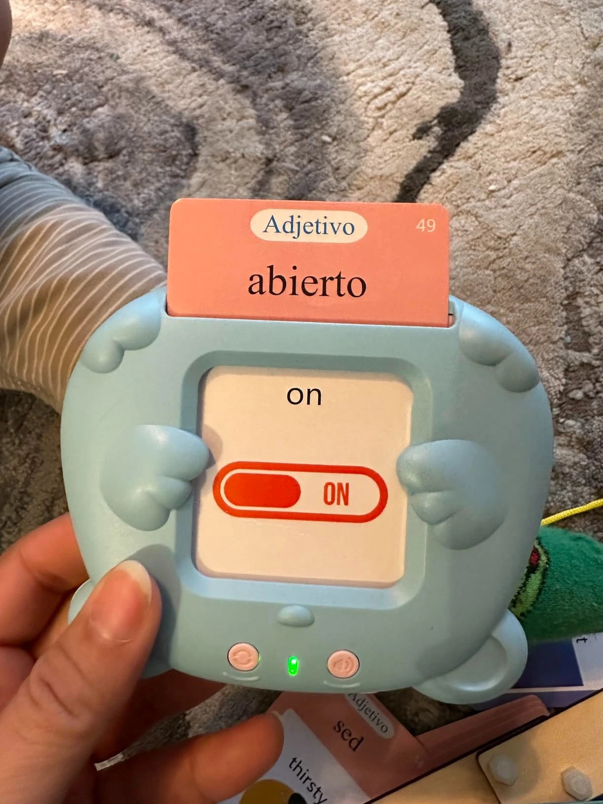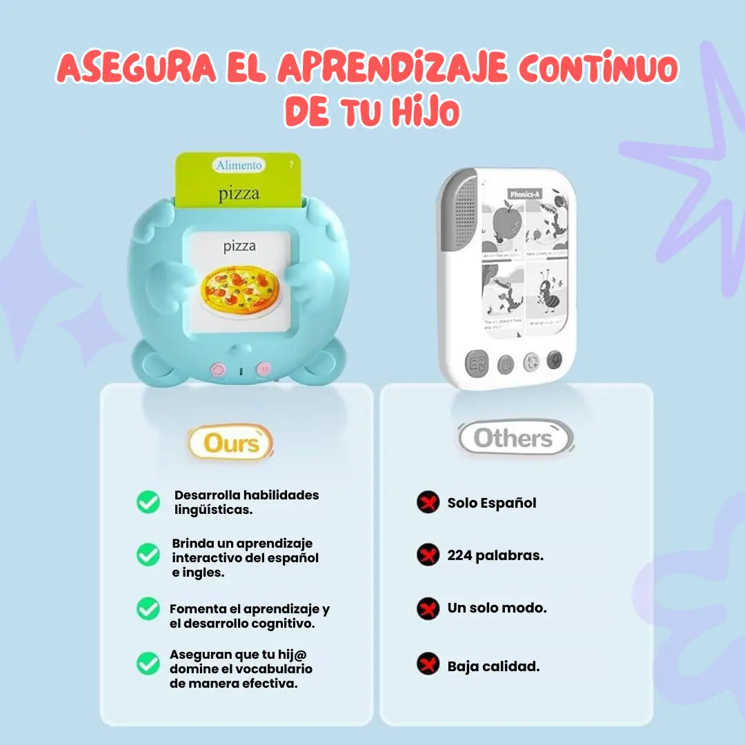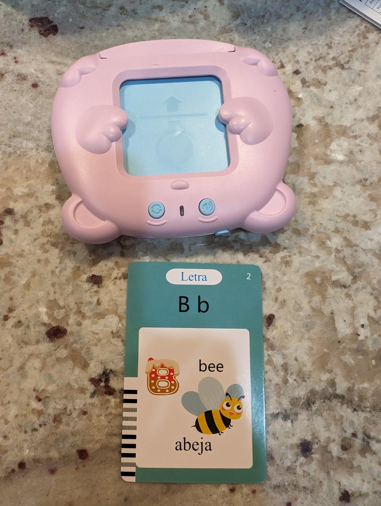 Estoy encantada con este juguete porque mantiene a mi hija alejada de la pantalla mientras aprende. Las tarjetas cubren una amplia variedad de temas, lo que enriquece su vocabulario en dos idiomas. Aunque me gustaría que incluyera una bolsa de almacenamiento más resistente, es un detalle menor. Muy buen producto.