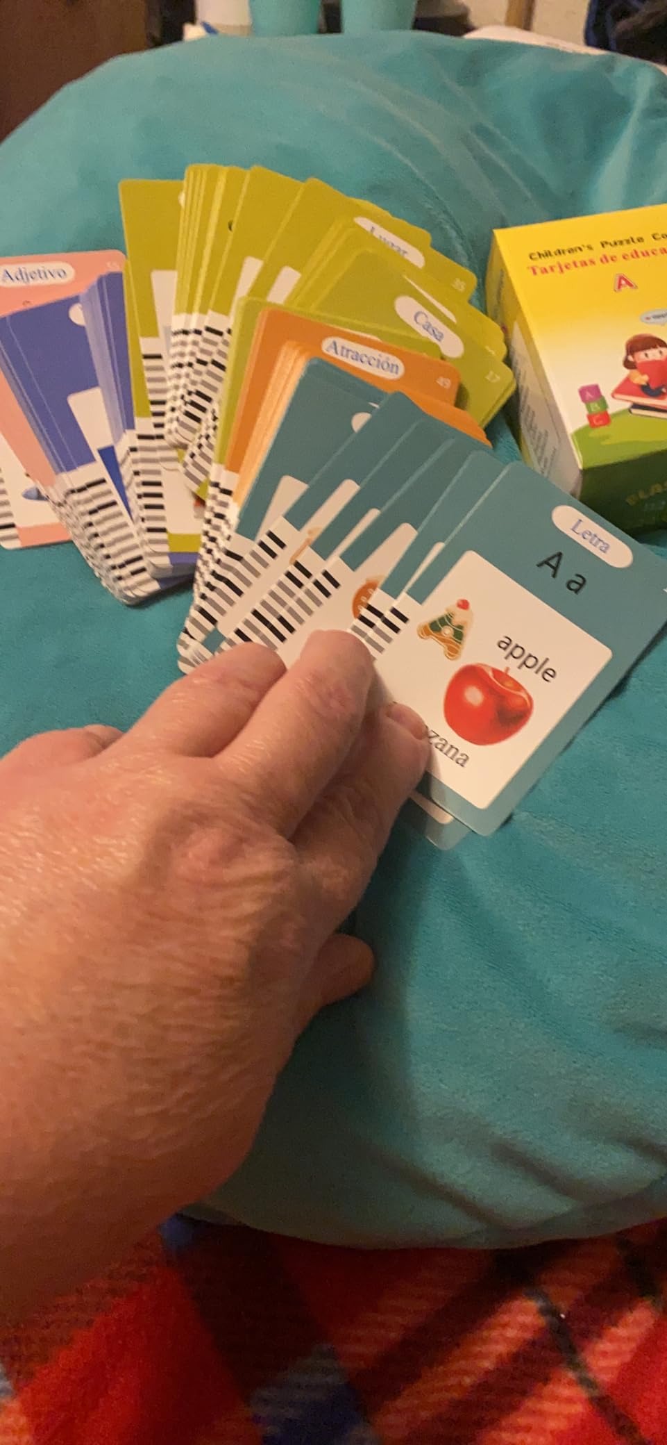 Este juguete ha sido una herramienta maravillosa para enseñar a mi hijo español e inglés. Las tarjetas son coloridas y fáciles de manejar. Me encanta que también hagan sonidos, lo que mantiene a mi hijo interesado y comprometido. Es muy fácil de usar y la bolsa de almacenamiento es un toque práctico. ¡Altamente recomendado!